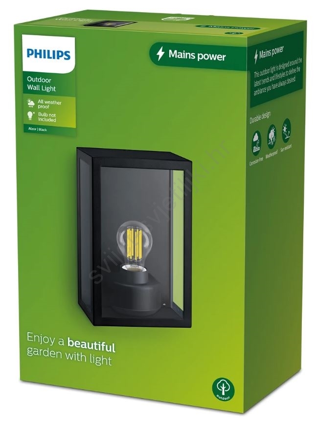 Philips - Vanjska zidna svjetiljka ALZOR 1xE27/25W/230V IP44 karakterizira lijep i funkcionalan dizajn. Za svjetiljku je prikladna žarulja s bazom E27. Ovdje možete kupiti i druge žarulje po povoljnim cijenama. Bit će zanimljiv dodatak Vašem domu.