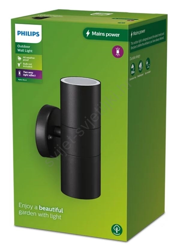 Philips - Vanjska zidna svjetiljka KYLIS 2xGU10/25W/230V IP44 karakterizira lijep i funkcionalan dizajn. Za svjetiljku je prikladna žarulja s bazom GU10. Ovdje možete kupiti i druge žarulje po povoljnim cijenama. Bit će zanimljiv dodatak Vašem domu.