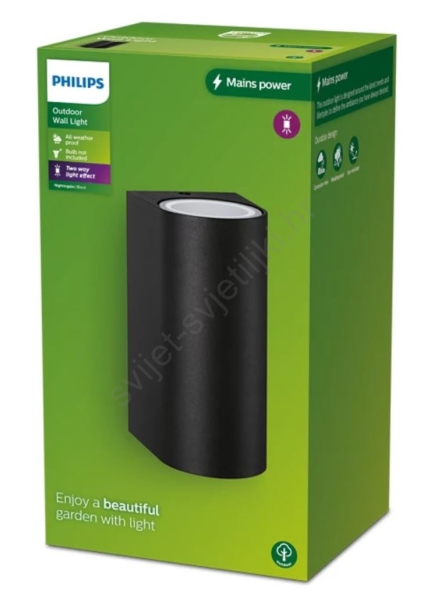 Philips - Vanjska zidna svjetiljka NIGHTINGALE 2xGU10/35W/230V IP44 karakterizira lijep i funkcionalan dizajn. Za svjetiljku je prikladna žarulja s bazom GU10. Ovdje možete kupiti i druge žarulje po povoljnim cijenama. Bit će zanimljiv dodatak Vašem domu.