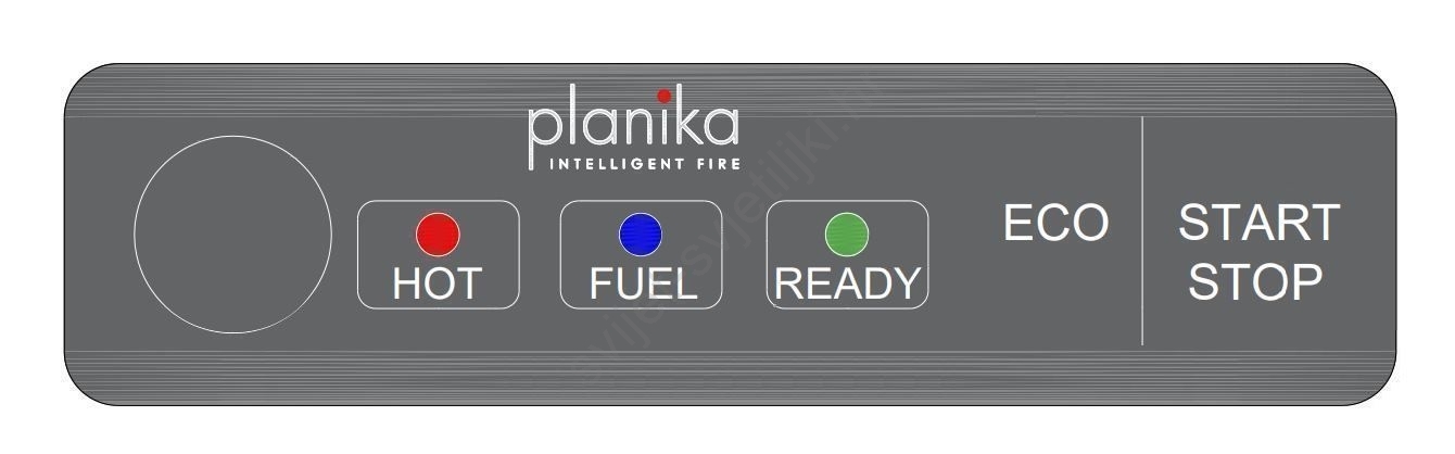 • Kontrolna tabla omogućava ručno uključivanje i isključivanje kamina, prebacivanje u ECO režim i signalizira kada je rezervoar za gorivo prazan, kada je kamin spreman za uključivanje i kada je pregrejan.