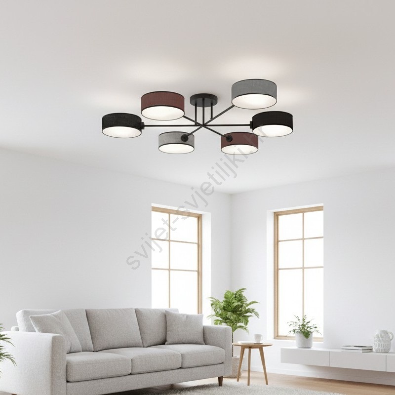 Površinski stropni luster MAGA 6xE14/10W/230V crna/smeđa/siva karakterizira lijep i funkcionalan dizajn. Za svjetiljku je prikladna žarulja s bazom E14. Ovdje možete kupiti i druge žarulje po povoljnim cijenama. Bit će zanimljiv dodatak Vašem domu.