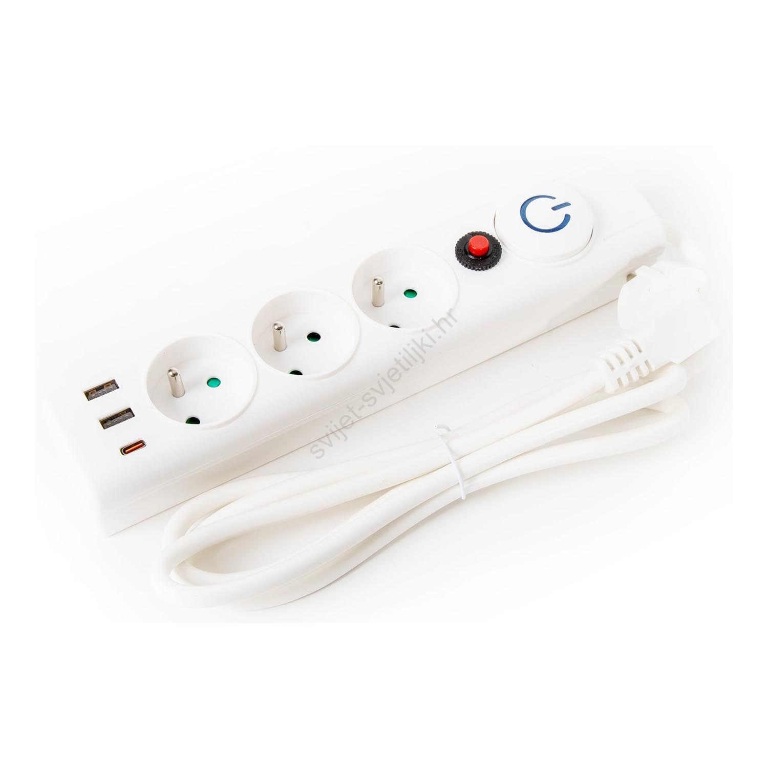 Produžni kabel s prekidačem 3Z Tip E + 2xUSB-A + 1xUSB-C 1,5m