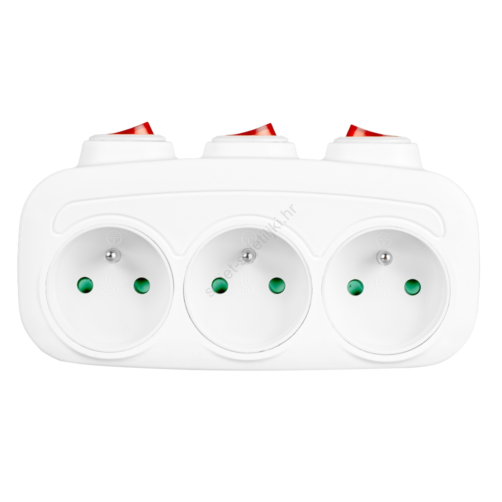• 3 zasebna prekidača, po jedan za svaku utičnicu.