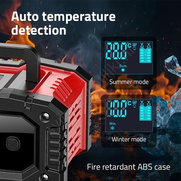 • Pogodan za akumulatore kapaciteta 6–300 Ah (12 V) i 6–150 Ah (24 V), koji se koriste u automobilima, motociklima, plovilima, rezervnim izvorima napajanja ili snježnim skuterima.