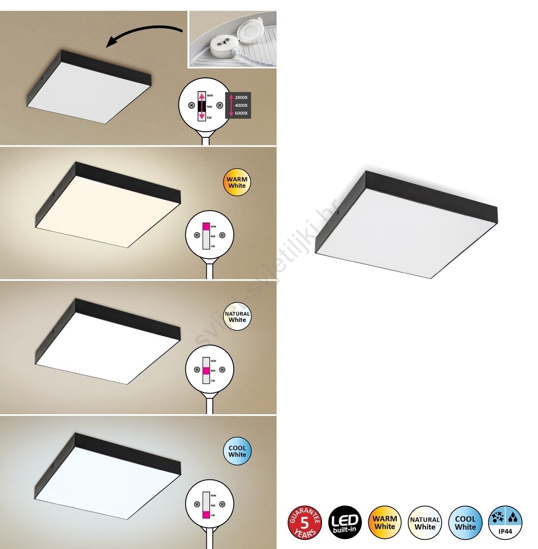 Rabalux - LED stropna svjetiljka LED/24W/230V 2800-6000K IP44 crna 30x30 cm
