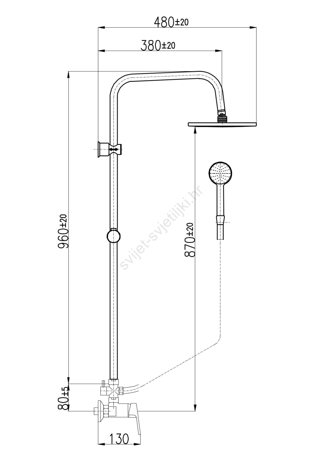 • Tuš set s miješalicom, glavnom i ručnom tuš glavom.