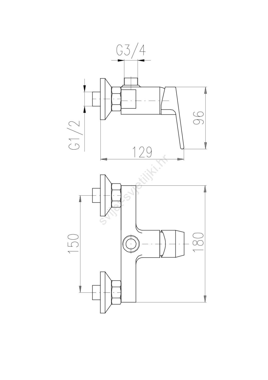 • Zidna tuš miješalica s gornjim priključkom 3/4" za tuš šipku.