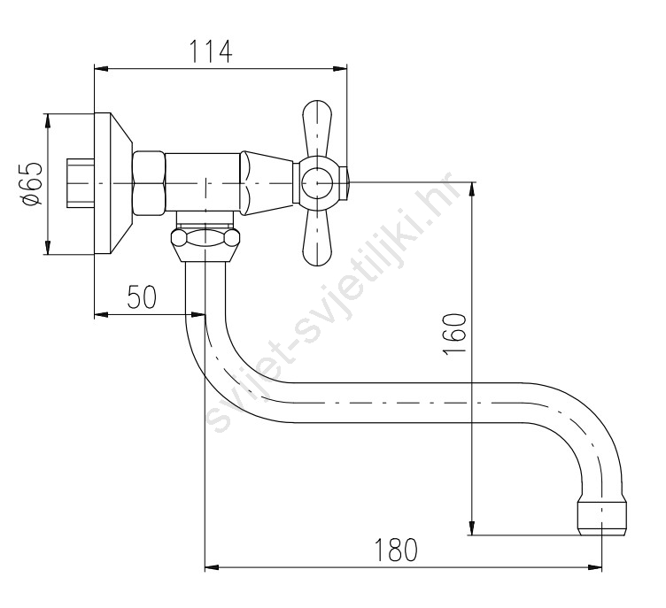 • Vodovodna zidna slavina za sudoper/umivaonik s okruglim izljevom.