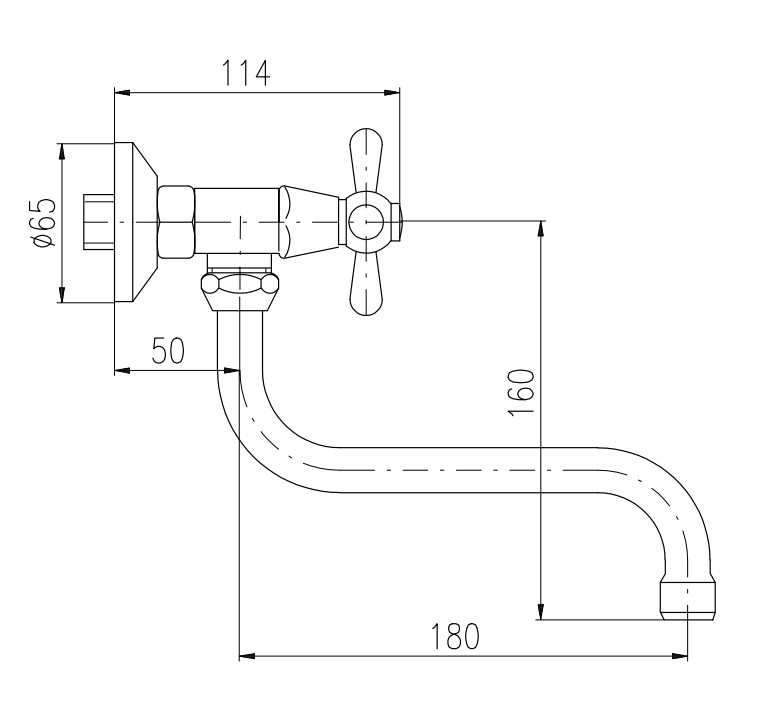 • Zidna miješalica za sudoper/umivaonik s okruglim izljevom duljine 180 mm.