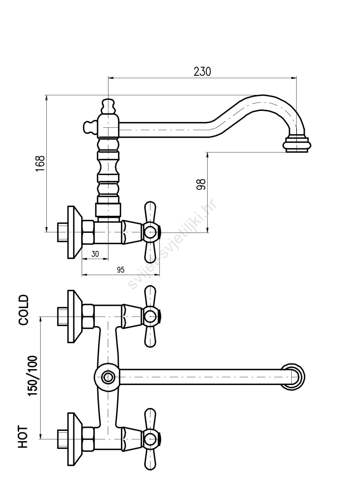 RAV Slezák MK102.5/28SM - Baterija za sudoper/umivaonik MORAVA RETRO 16,8 cm stari mesing