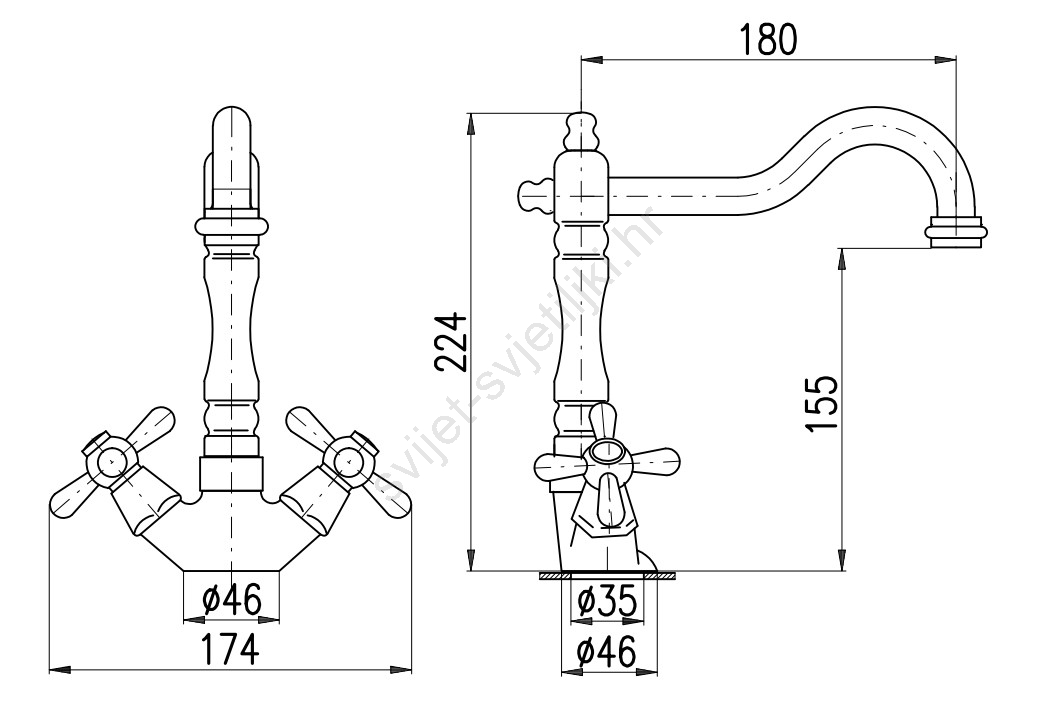 • Slavina za umivaonik na stalku s okretljivim izljevom i CLICK-CLACK odvodom 5/4".