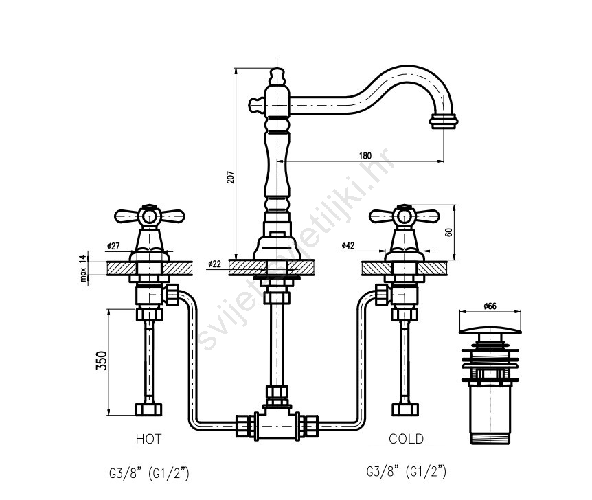• Slavina za umivaonik na stalku s rotirajućim izljevom i CLICK-CLACK ispustom 5/4".