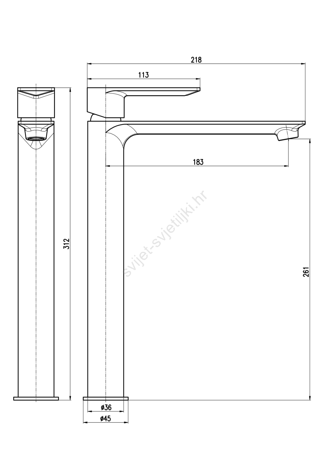 • Stojeća umivaonička slavina bez ispusta.