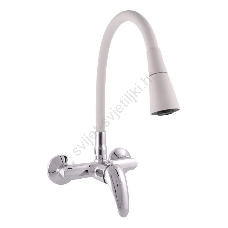 • Zidna slavina za sudoper s fleksibilnim rotirajućim izljevom i tušem.