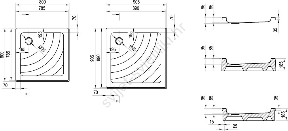 Ravak A007701120 - Kvadratna tuš kadica ANGELA 90x90 cm bijela