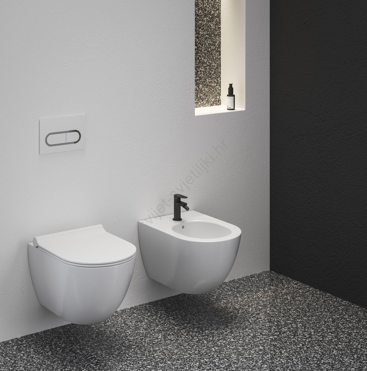 • Školjka je namijenjena zidnoj ugradnji i koristi nevidljivi sustav pričvršćivanja EasyFix za uredan izgled.
