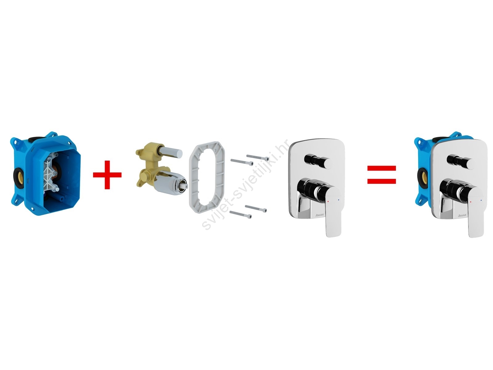 • Univerzalni instalacijski sustav za jednoručne ugradbene miješalice za kadu i tuš, ugrađen u zid.