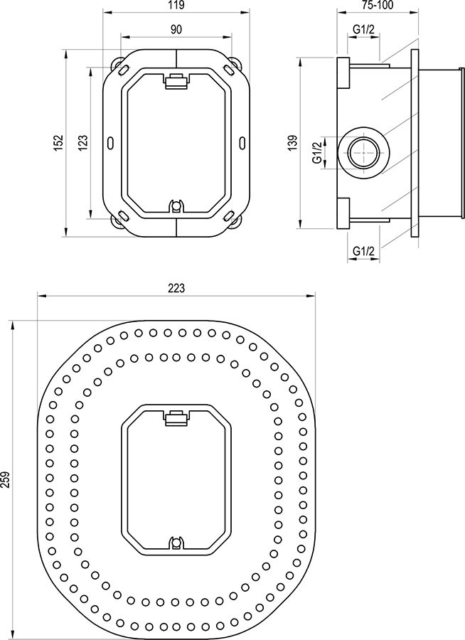 Ravak X070052 - Osnovno tijelo za podžbukne baterije R-BOX 15,2x11,9 cm