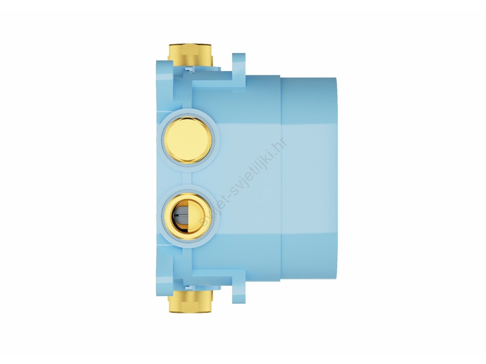 • R-box je univerzalan instalacijski sustav za jednoručne ugradbene miješalice za kadu i tuš, koji se ugrađuje u zid.