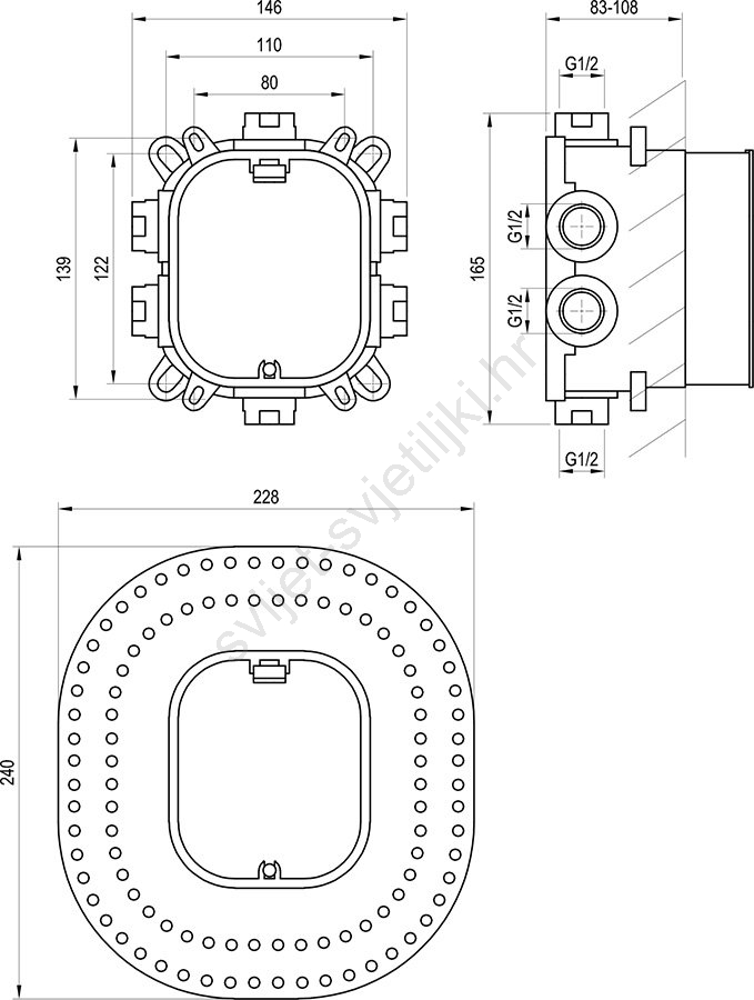 Ravak X070139 - Osnovno tijelo za podžbukne baterije R-BOX VARI 13,9x14,6 cm