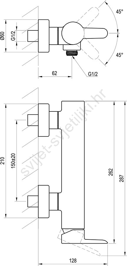 • Razmak od 150 mm omogućuje ugradnju u sve tuš kabine.