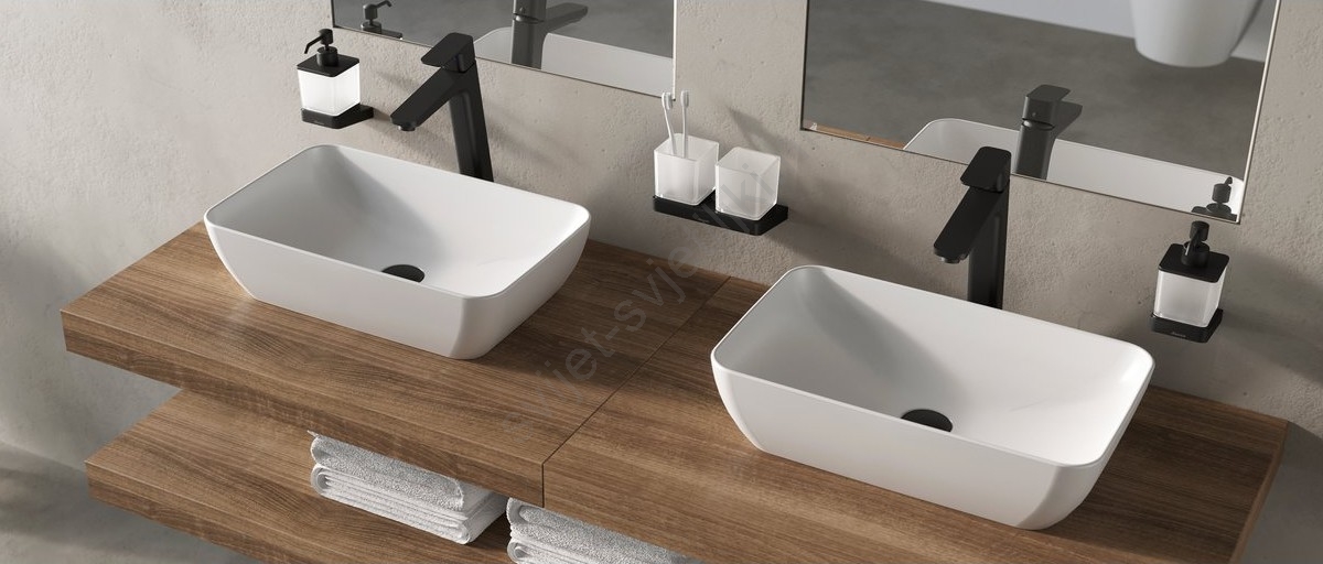 • Slavina za umivaonik Free u crnoj izvedbi ima dodatno produljenu visinu od 334 mm, idealna za umivaonike postavljene na ploču.