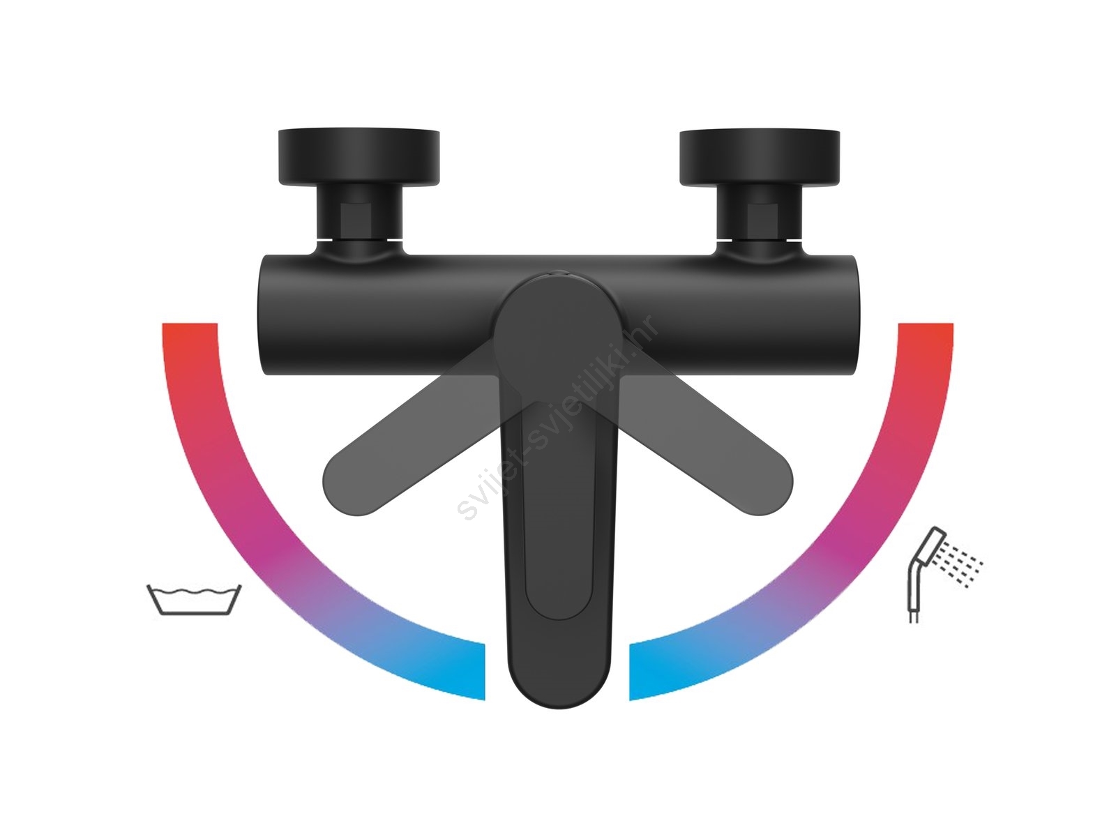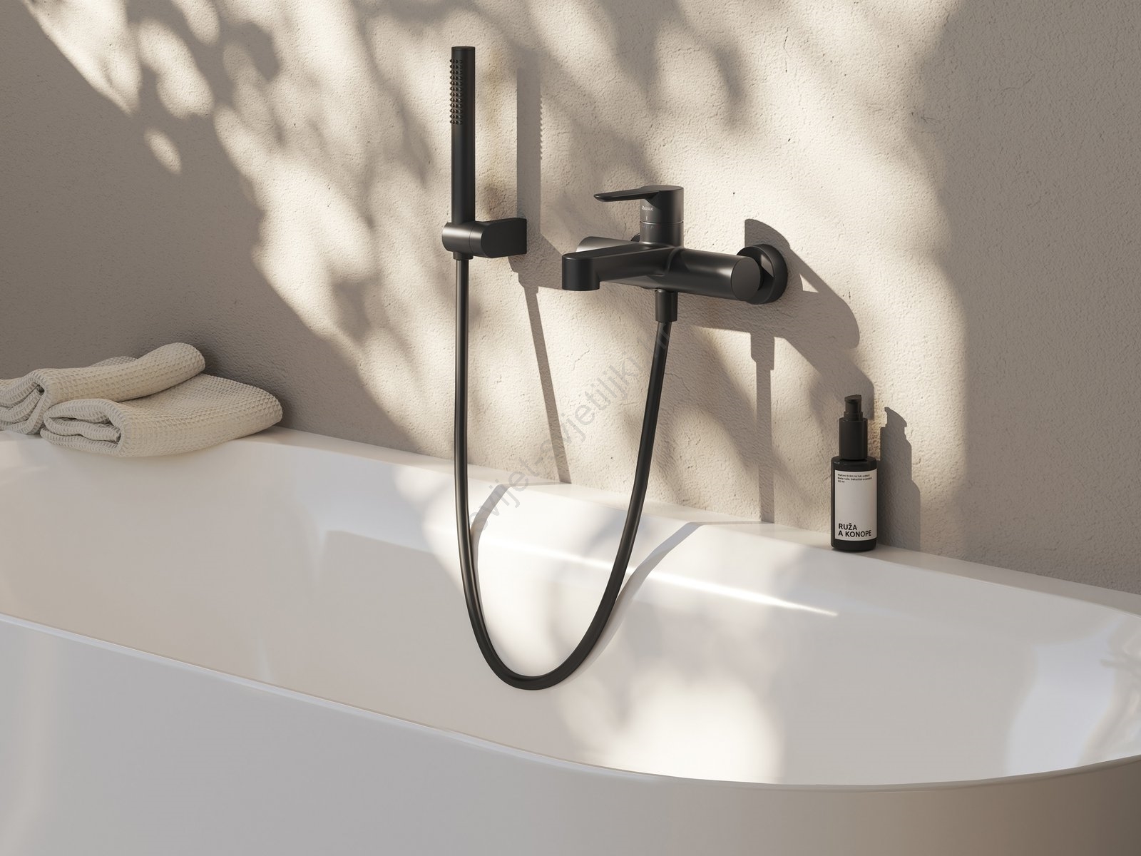 • Jednoručna miješalica za kadu u crnoj izvedbi.