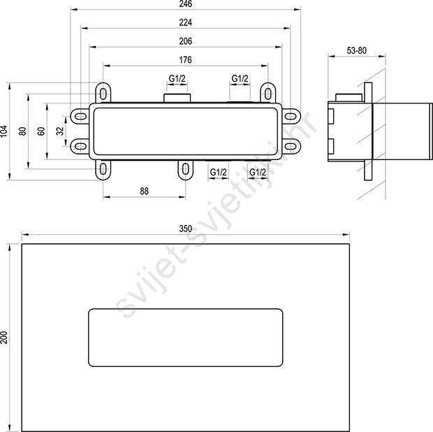 • Namijenjeno za horizontalne podžbukne miješalice serija Espirit ES 065.00.O2.RB07D+S., ES 068.00.O3.RB07D+S. i Eleganta EL 065.00.O2.RB07D+S., EL 068.00.O3.RB07D+S.