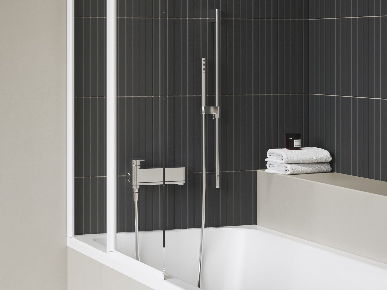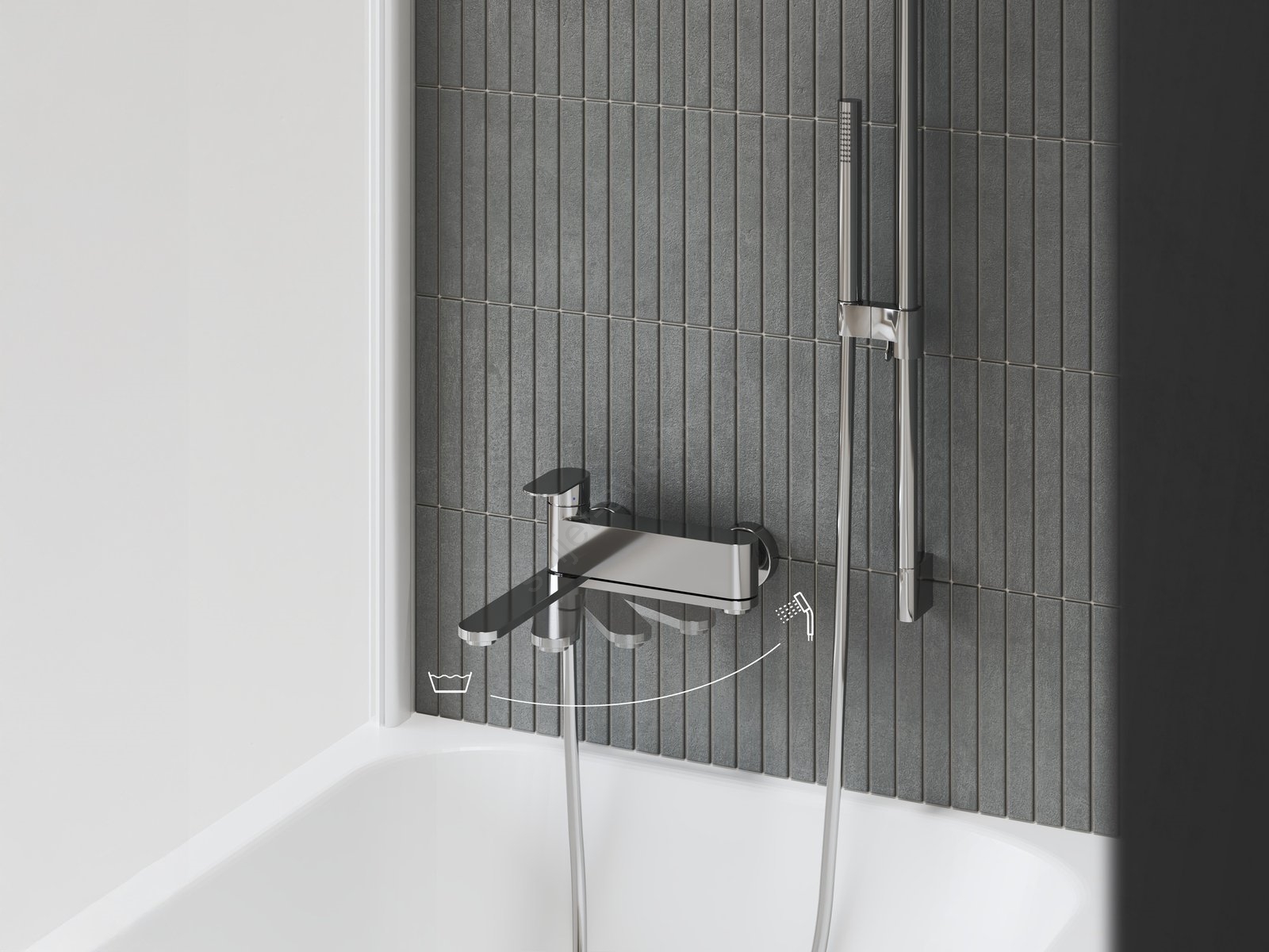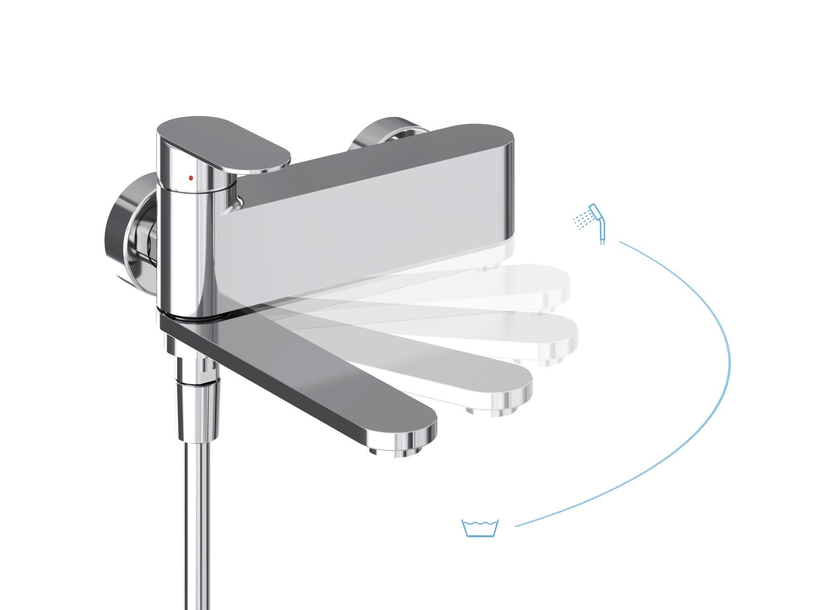 • Jedinstvena rotirajuća preklopna ručica spaja funkciju punjenja kade i prebacivanje na tuš u jednom elementu.
