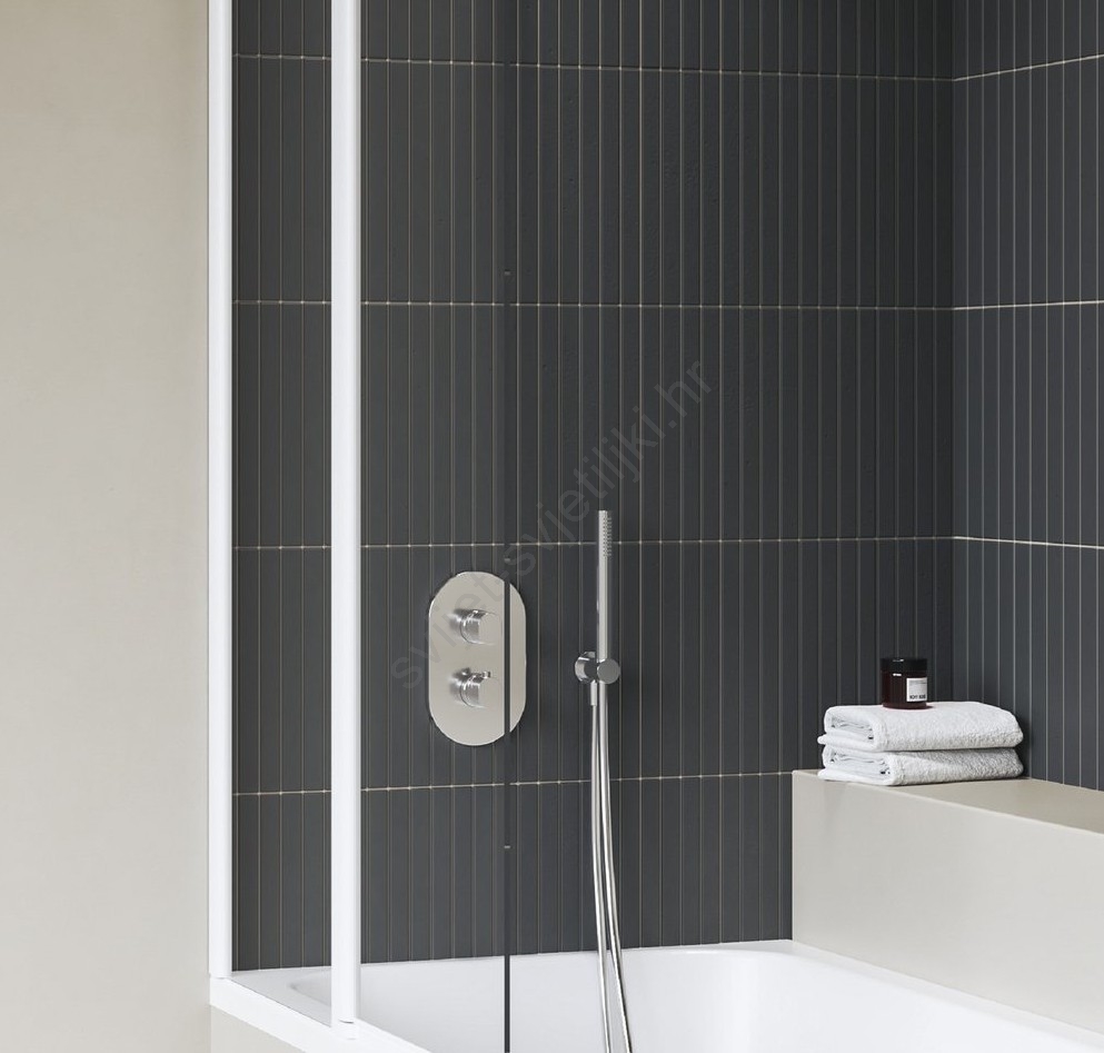 • Opremljena je termostatskom kartušom koja osigurava stalnu temperaturu vode i eliminira temperaturne oscilacije tijekom tuširanja ili punjenja kade.