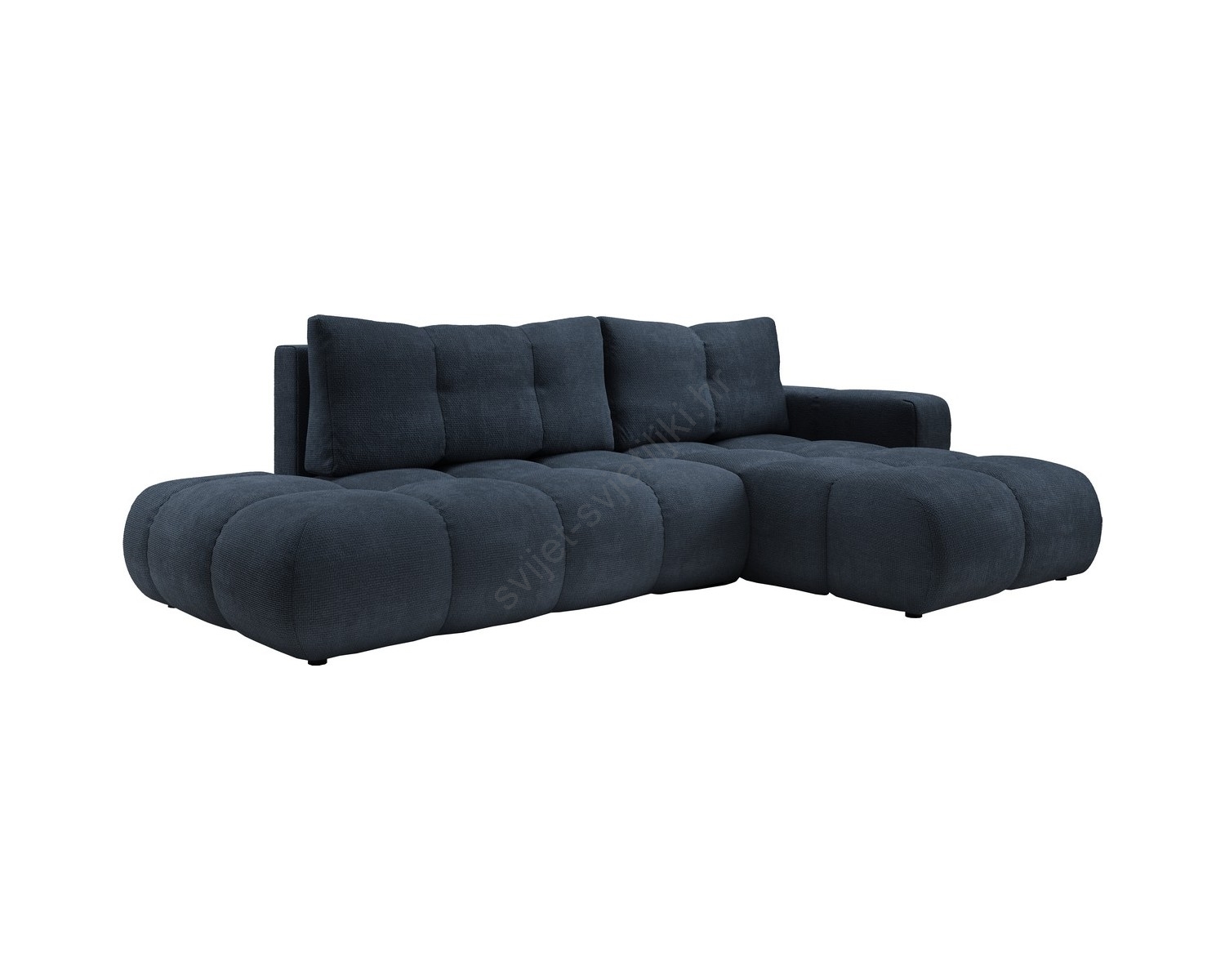 • Razvlačna kutna tapecirana garnitura ALMADA u obliku slova L, desna, plava, s prostorom za pohranu
