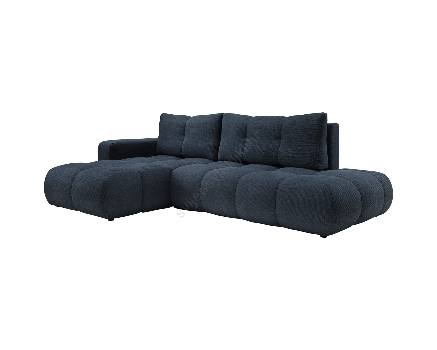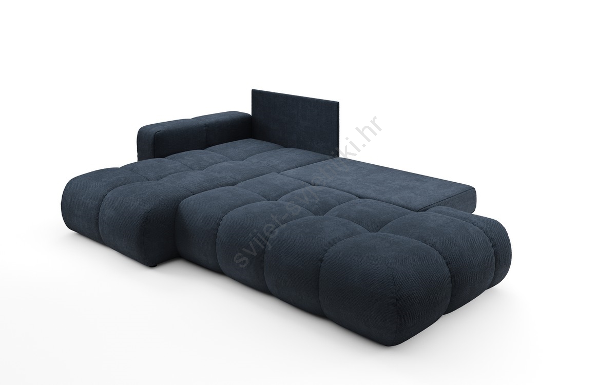 • Razvlačna kutna tapecirana garnitura ALMADA u obliku slova L, desna, plava, s prostorom za pohranu