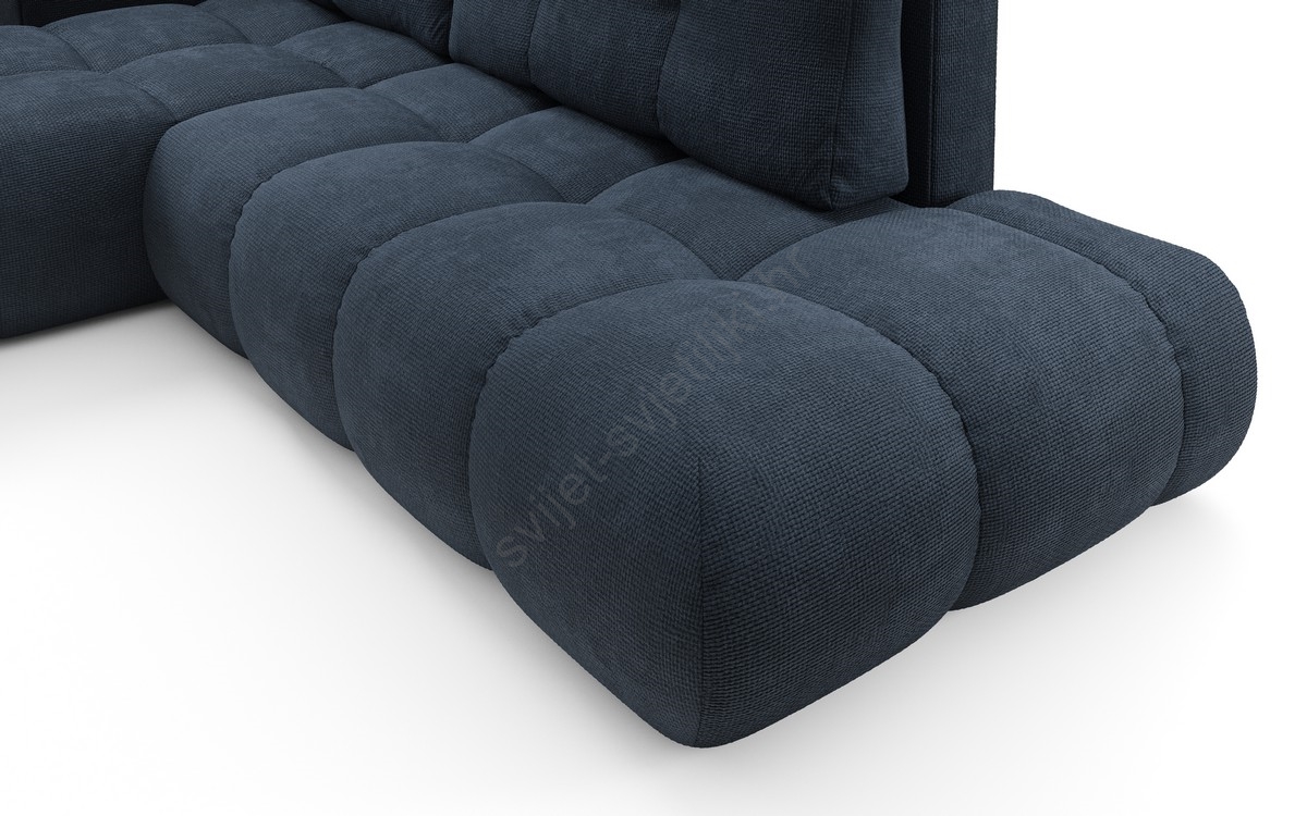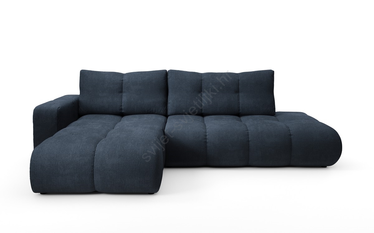 • Razvlačna kutna tapecirana sjedeća garnitura ALMADA u L-obliku, desna, plava, s prostorom za odlaganje