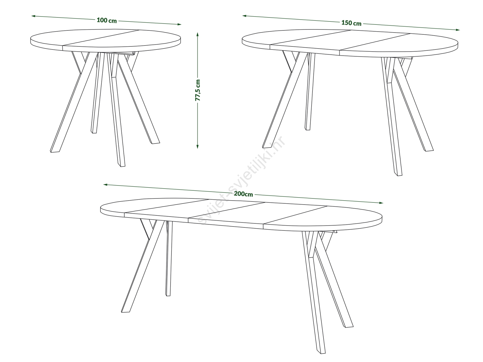 • Dimenzije stola nakon proširenja: 200 x 100 cm i 150 x 100 cm.