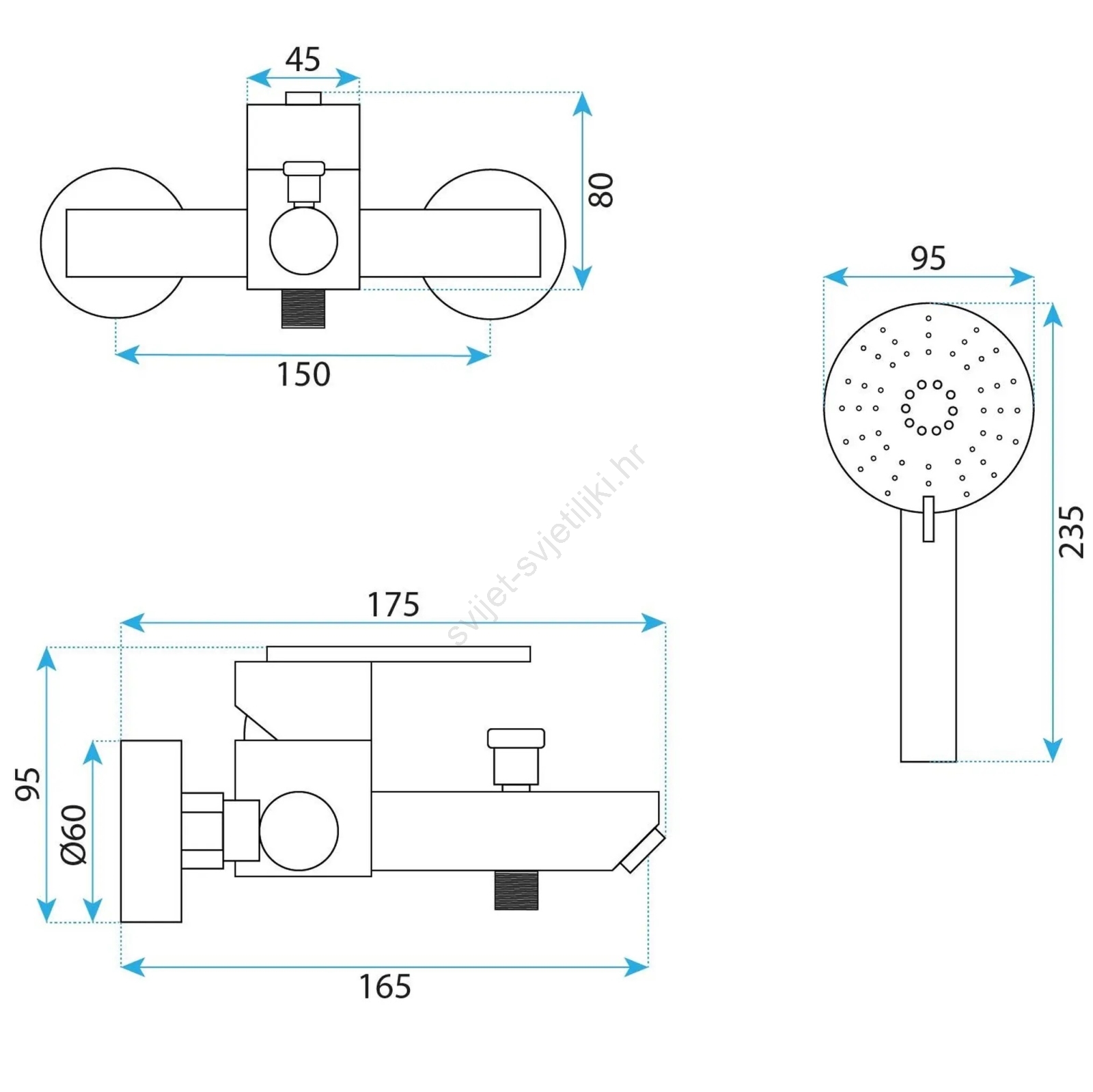 • Set uključuje: miješalicu za kadu, ručni tuš, tuš crijevo, držač ručnog tuša.
