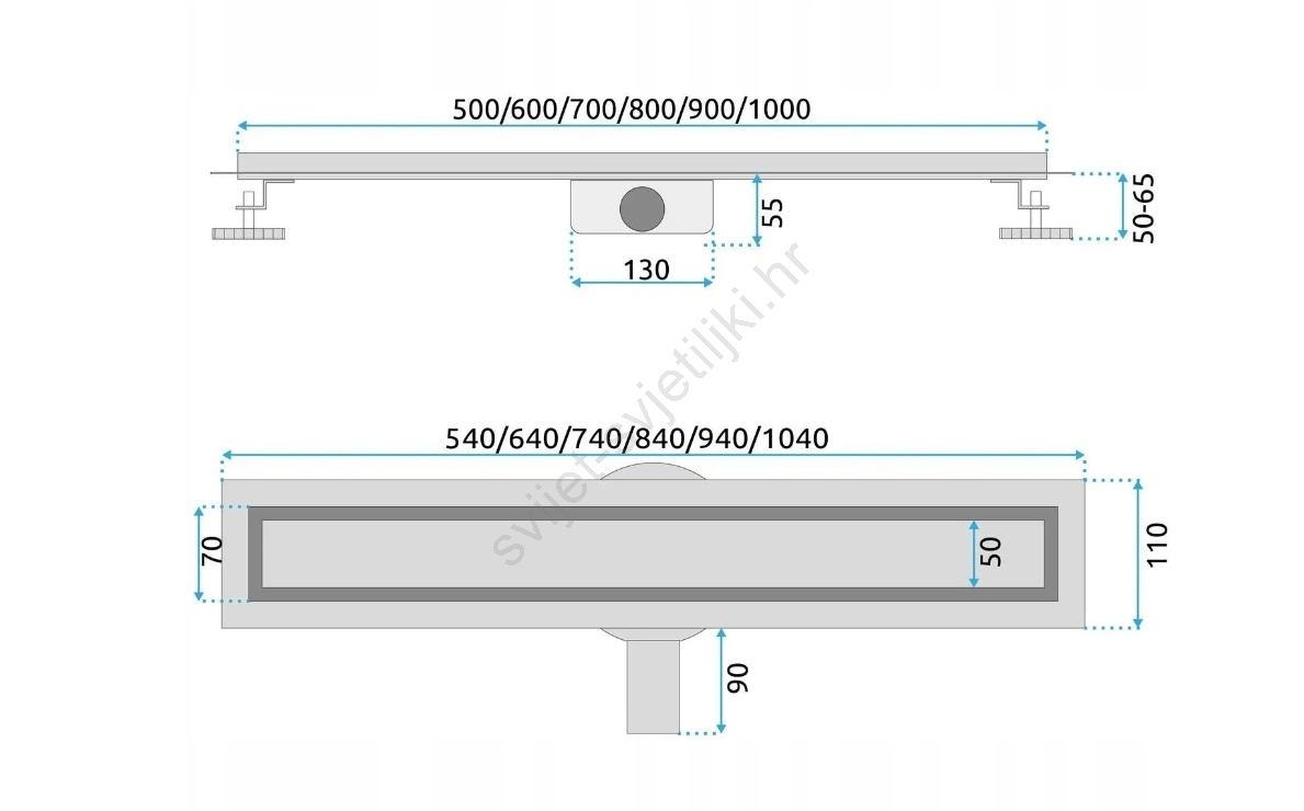 • Zahvaljujući visinski podesivim nogicama (50–65 mm) odvod se lako prilagođava različitim uvjetima poda.