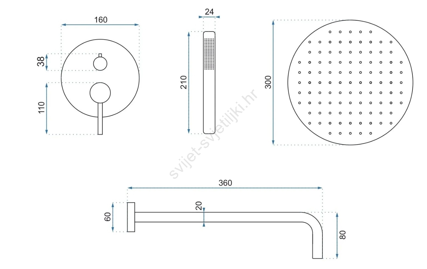 REA-P4160 - Set za tuš s podžbuknom miješalicom LUNGO, brušeno zlato