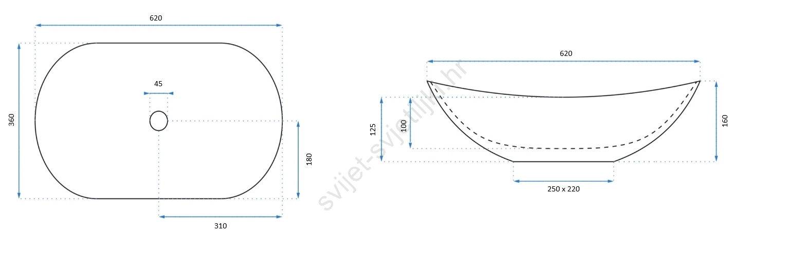 • Umivaonik je izrađen od visokokvalitetne sanitarne keramike.