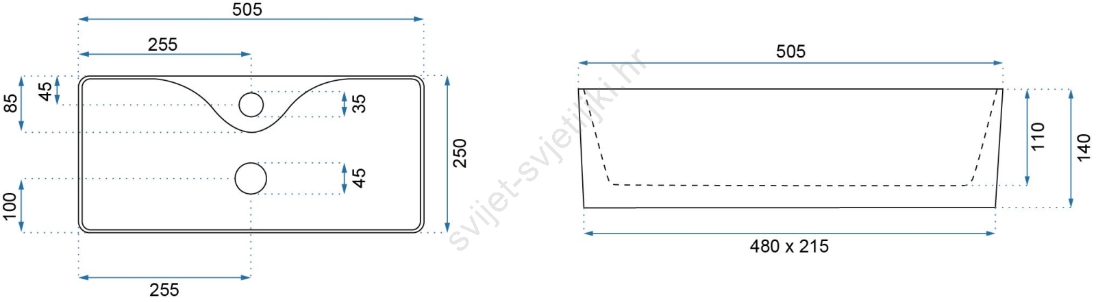 • Umivaonik je izrađen od visokokvalitetne sanitarne keramike.