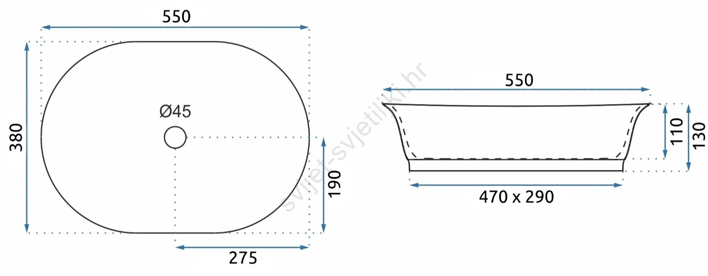 • Umivaonik je izrađen od visokokvalitetne sanitarne keramike.