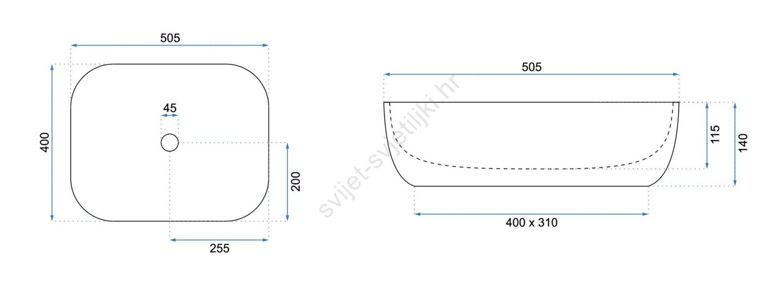REA-U6300 - Umivaonik na ploču MONA SLIM 40x50,5 cm keramika/sjajna bijela