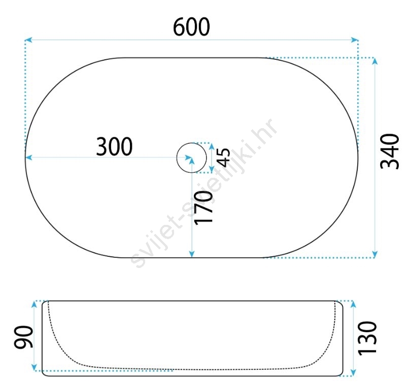 REA-U6526 - Nadgradni umivaonik VANDA 34x60 cm keramika/visoki sjaj/bijela