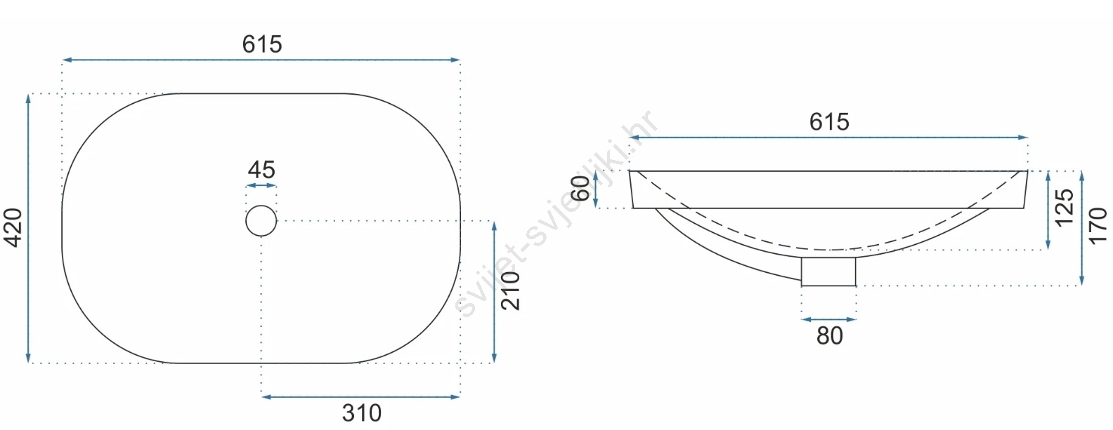 • Umivaonik je izrađen od visokokvalitetne sanitarne keramike.