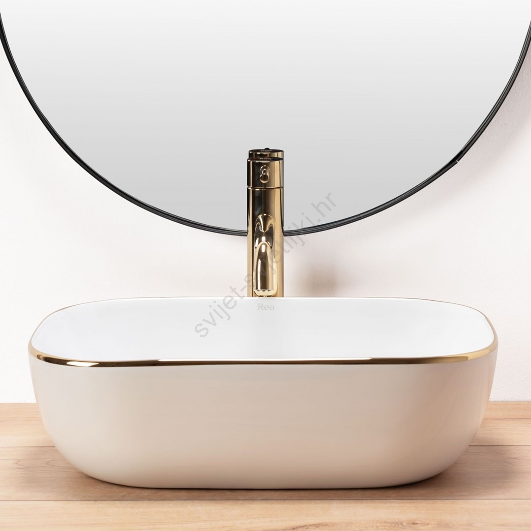 REA-U8736 - Umivaonik na ploču BELINDA 33,5x46,5 cm keramika/bijela/zlatna
