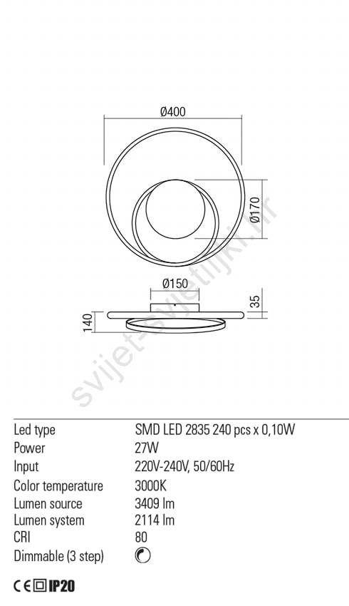 • Redo 01-1790 - LED prigušiva zidna svjetiljka TORSION LED/27W/230V, promjer 40 cm, brončana