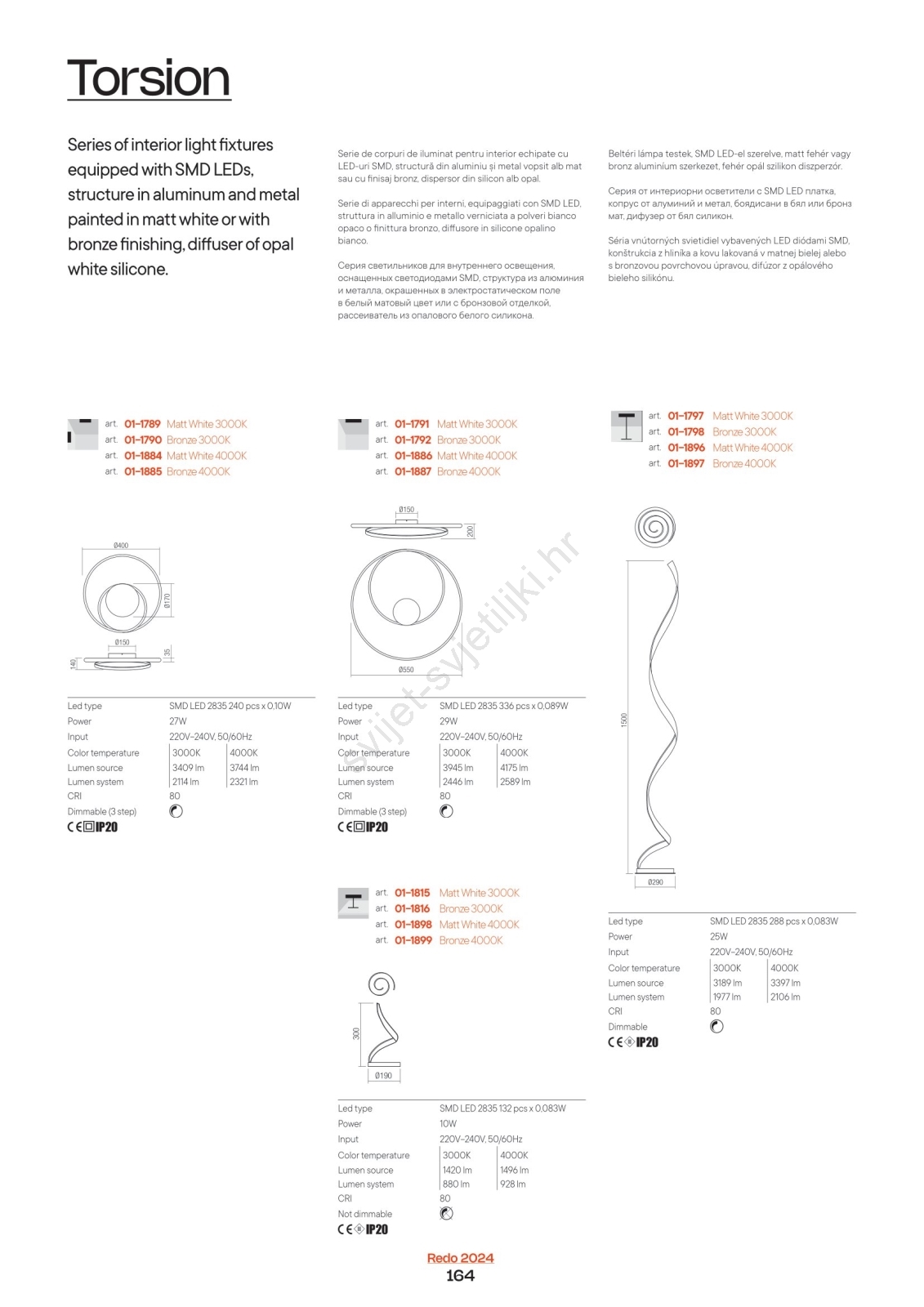 • Redo 01-1790 - LED prigušiva zidna svjetiljka TORSION LED/27W/230V, promjer 40 cm, brončana
