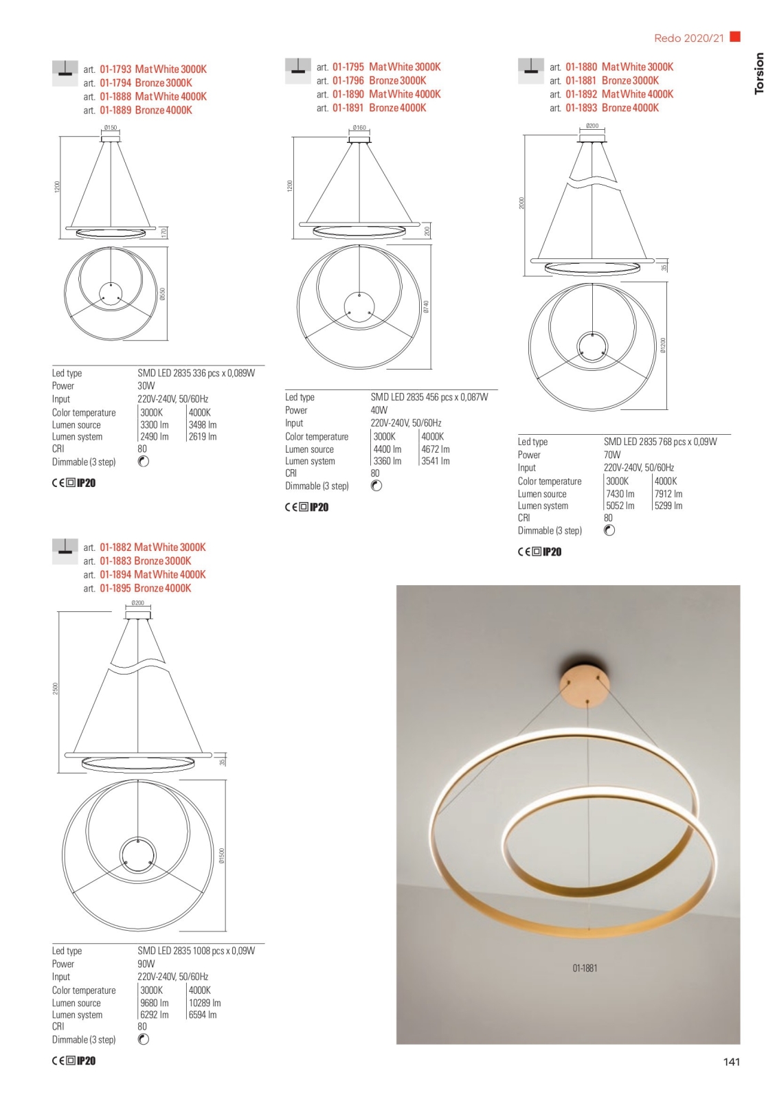 • Redo 01-1795 - LED luster na sajli s mogućnošću prigušivanja TORSION LED/40W/230V, promjer 74 cm, bijela