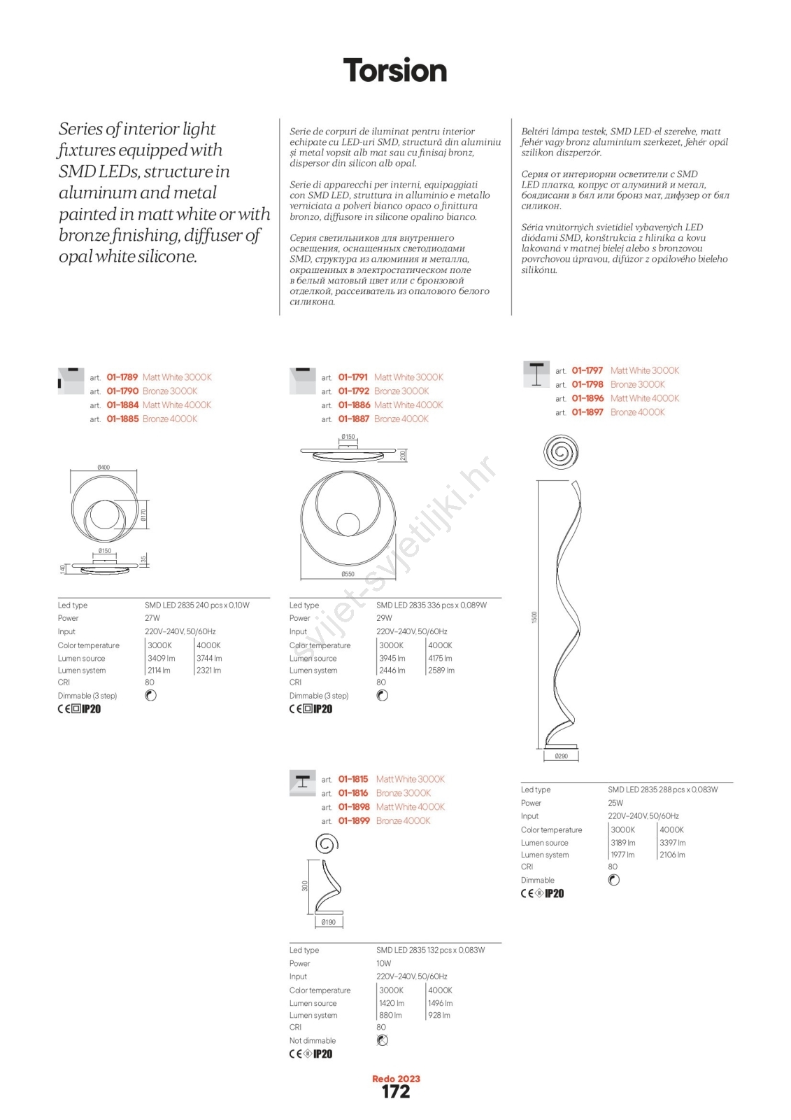 • Redo 01-1886 - Prigušivo LED stropno svjetlo TORSION LED/29W/230V Ø 55 cm bijela