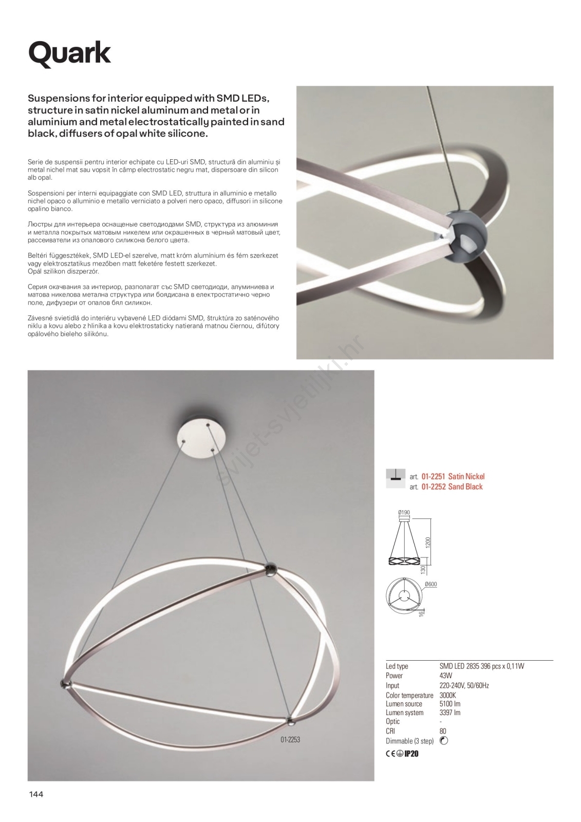 Redo 01-2251 - LED prigušivački luster na užetu QUARK LED/43W/230V 3000K promjer 60 cm mat krom