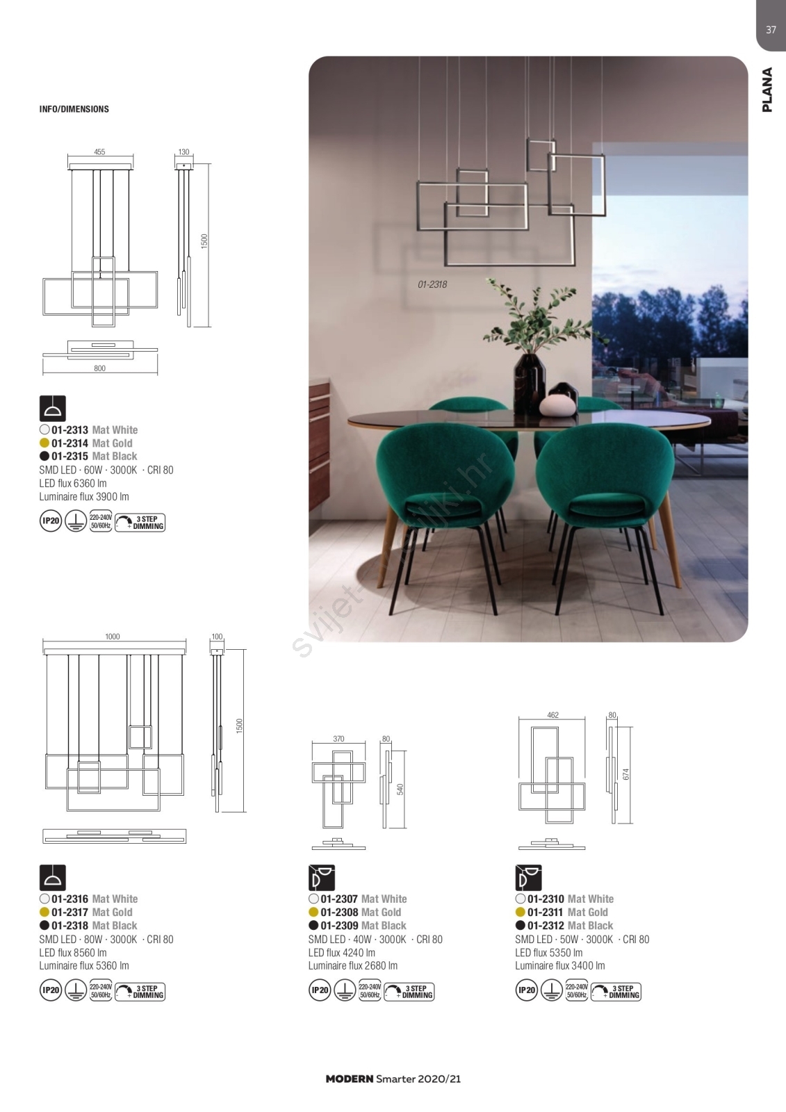 • Redo 01-2316 - LED luster s mogućnošću prigušivanja na sajli PLANA LED/80W/230V bijela